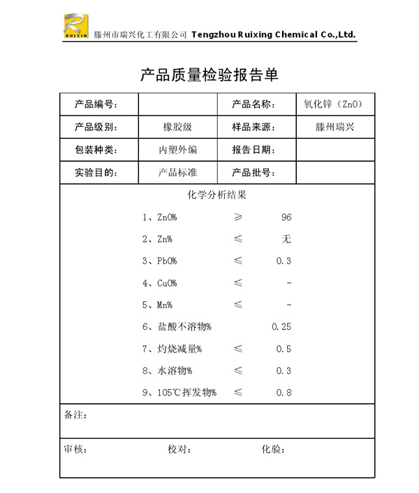 瑞興化工有限公司是生產氧化鋅的重點企業(yè),于2008年通過ISO9001:2008質量管理體系認證。“瑞興”牌氧化鋅在國內擁有較大穩(wěn)定的市場,并遠銷東南亞、中東、中南美等國家和地區(qū),在國內外享有較高聲譽。